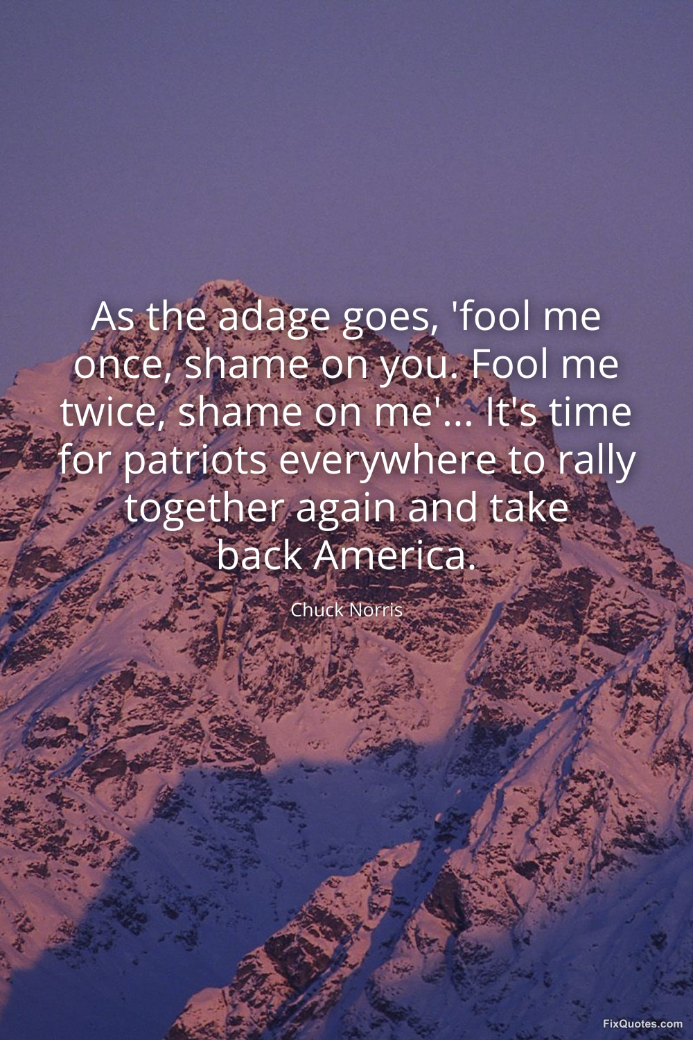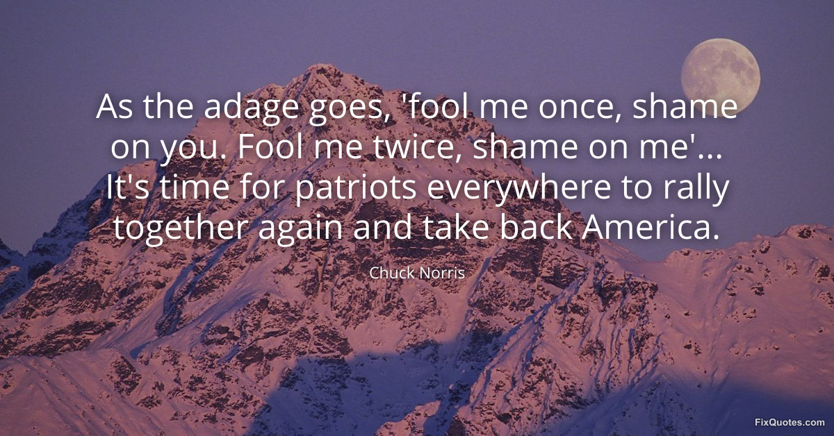 Norris, Chuck. (2026, March 20). As the adage goes, 'fool me once, shame on you. Fool me twice, shame on me'... It's time for patriots everywhere to rally together again and take back America. FixQuotes. https://fixquotes.com/quotes/as-the-adage-goes-fool-me-once-shame-on-you-fool-186200/