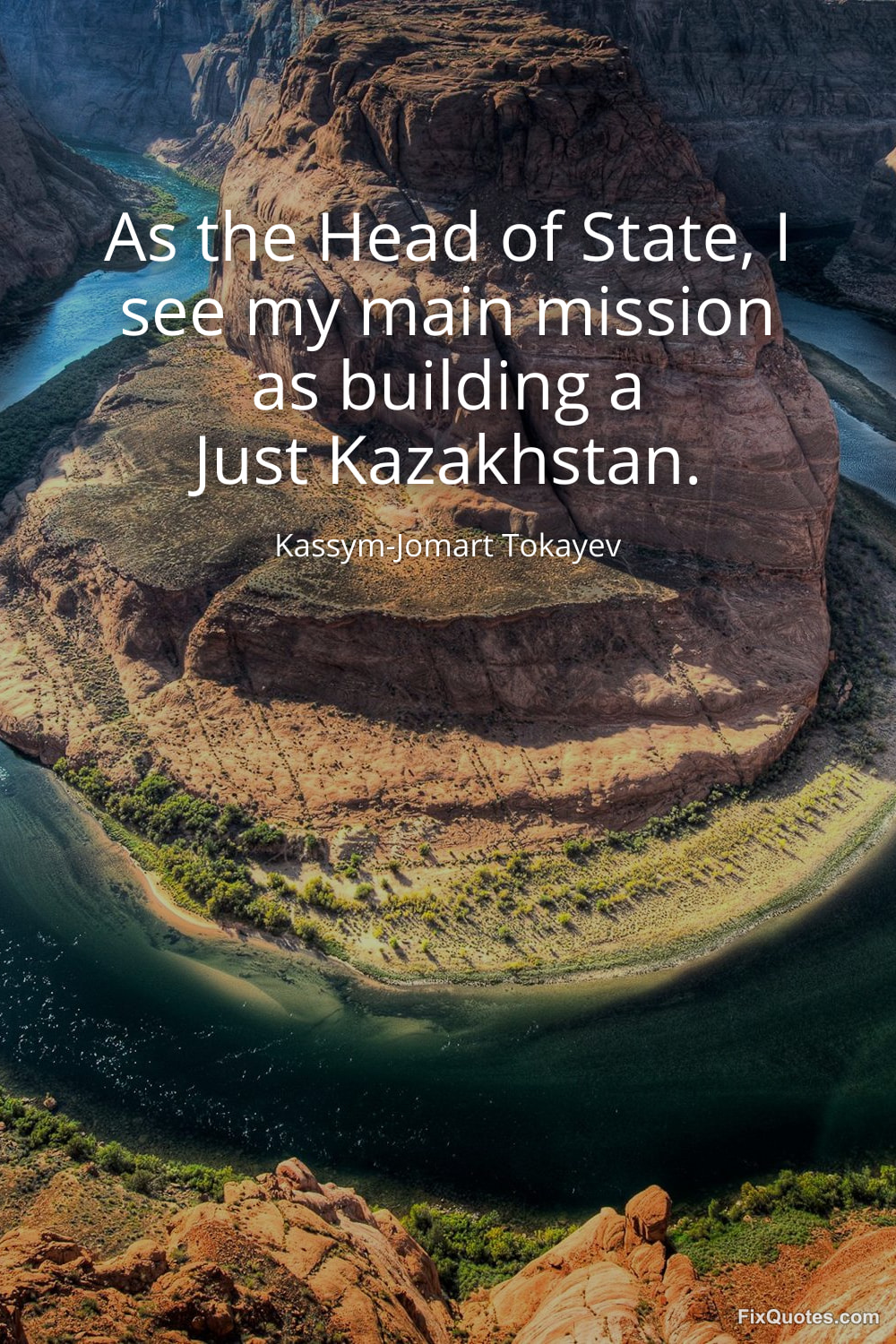 "As the Head of State, I see my main mission as building a Just Kazakhstan." FixQuotes, 16 Feb. 2026, https://fixquotes.com/quotes/as-the-head-of-state-i-see-my-main-mission-as-185539/. Accessed 19 Feb. 2026.