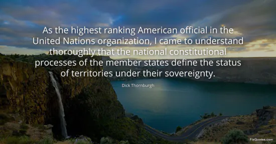 Thornburgh, Dick. "As the highest ranking American official in the United Nations organization, I came to understand thoroughly that the national constitutional processes of the member states define the status of territories under their sovereignty." FixQuotes. January 17, 2026. https://fixquotes.com/quotes/as-the-highest-ranking-american-official-in-the-52749/.
