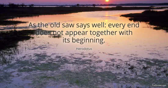 Herodotus. "As the old saw says well: every end does not appear together with its beginning." FixQuotes. January 15, 2026. https://fixquotes.com/quotes/as-the-old-saw-says-well-every-end-does-not-96265/.