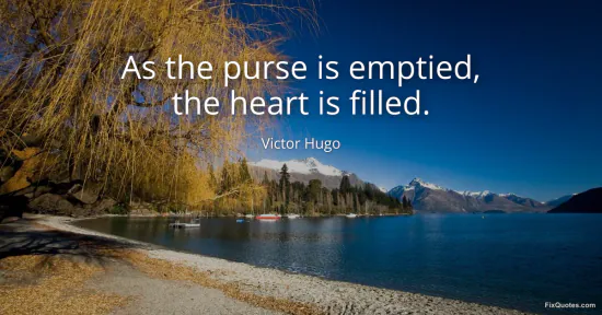 Hugo, Victor. (2026, January 14). As the purse is emptied, the heart is filled. FixQuotes. https://fixquotes.com/quotes/as-the-purse-is-emptied-the-heart-is-filled-22583/