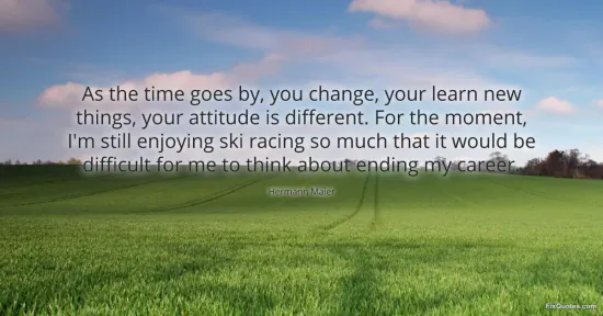 Maier, Hermann. "As the time goes by, you change, your learn new things, your attitude is different. For the moment, I'm still enjoying ski racing so much that it would be difficult for me to think about ending my career." FixQuotes. January 15, 2026. https://fixquotes.com/quotes/as-the-time-goes-by-you-change-your-learn-new-53373/.