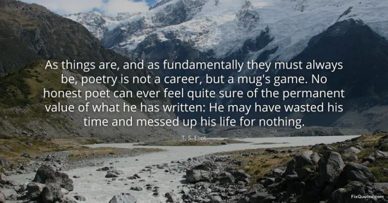 "As things are, and as fundamentally they must always be, poetry is not a career, but a mug's game. No honest poet can ever feel quite sure of the permanent value of what he has written: He may have wasted his time and messed up his life for nothing"