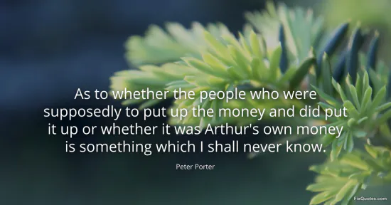 Porter, Peter. (2026, January 16). As to whether the people who were supposedly to put up the money and did put it up or whether it was Arthur's own money is something which I shall never know. FixQuotes. https://fixquotes.com/quotes/as-to-whether-the-people-who-were-supposedly-to-101792/