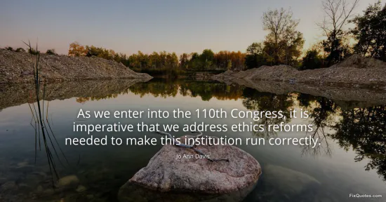 Davis, Jo Ann. (2026, January 15). As we enter into the 110th Congress, it is imperative that we address ethics reforms needed to make this institution run correctly. FixQuotes. https://fixquotes.com/quotes/as-we-enter-into-the-110th-congress-it-is-158653/