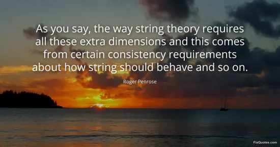 Penrose, Roger. (2026, January 17). As you say, the way string theory requires all these extra dimensions and this comes from certain consistency requirements about how string should behave and so on. FixQuotes. https://fixquotes.com/quotes/as-you-say-the-way-string-theory-requires-all-64684/