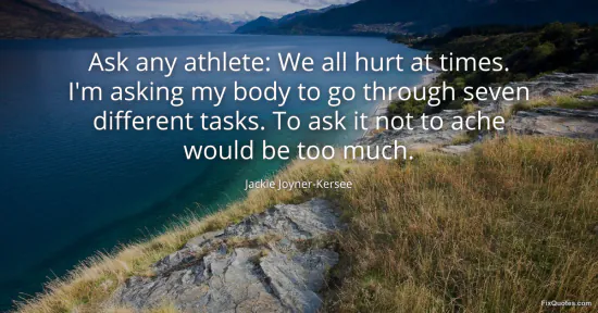 Joyner-Kersee, Jackie. "Ask any athlete: We all hurt at times. I'm asking my body to go through seven different tasks. To ask it not to ache would be too much." FixQuotes. January 16, 2026. https://fixquotes.com/quotes/ask-any-athlete-we-all-hurt-at-times-im-asking-my-82947/.