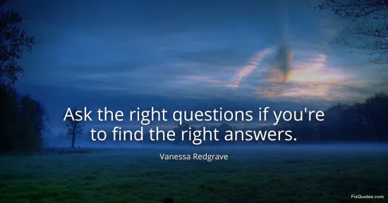 Redgrave, Vanessa. (2026, January 14). Ask the right questions if you're to find the right answers. FixQuotes. https://fixquotes.com/quotes/ask-the-right-questions-if-youre-to-find-the-165138/