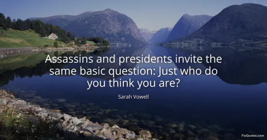 Vowell, Sarah. (2026, January 16). Assassins and presidents invite the same basic question: Just who do you think you are? FixQuotes. https://fixquotes.com/quotes/assassins-and-presidents-invite-the-same-basic-95185/