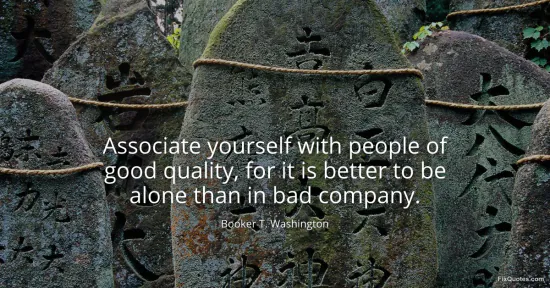 Washington, Booker T. "Associate yourself with people of good quality, for it is better to be alone than in bad company." FixQuotes. January 17, 2026. https://fixquotes.com/quotes/associate-yourself-with-people-of-good-quality-30287/.