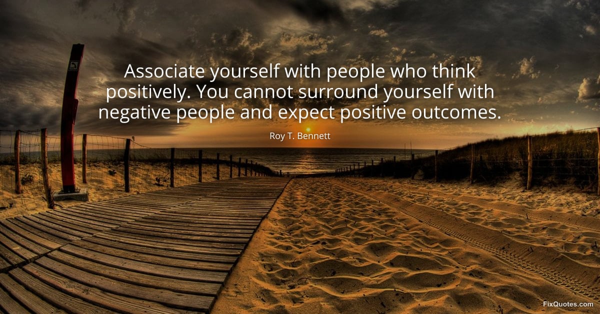 Bennett, Roy T. (2026, January 11). Associate yourself with people who think positively. You cannot surround yourself with negative people and expect positive outcomes. FixQuotes. https://fixquotes.com/quotes/associate-yourself-with-people-who-think-183816/