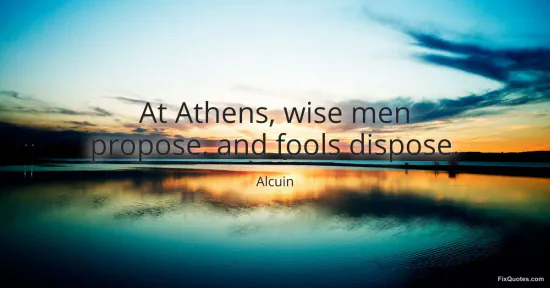 A neat little barb, sharpened by the disappointment of watching intelligence lose to spectacle. "At Athens, wise men propose, and fools dispose" uses Athens as more than a city: it is shorthand for the great civic experiment where rhetoric and crowds could overrule expertise. Alcuin, a clergyman and court scholar in the early medieval world, isn’t nostalgically praising democracy; he’s warning that public decision-making can turn wisdom into mere suggestion, easily vetoed by vanity, ignorance, or whoever can work the room.