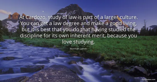 Lamm, Norman. (2026, January 15). At Cardozo, study of law is part of a larger culture. You can get a law degree and make a good living, but it is best that you do that having studied the discipline for its own inherent merit, because you love studying. FixQuotes. https://fixquotes.com/quotes/at-cardozo-study-of-law-is-part-of-a-larger-86493/