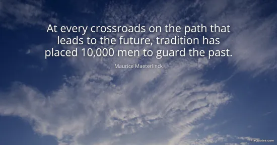 Maeterlinck, Maurice. (2026, February 8). At every crossroads on the path that leads to the future, tradition has placed 10,000 men to guard the past. FixQuotes. https://fixquotes.com/quotes/at-every-crossroads-on-the-path-that-leads-to-the-150960/