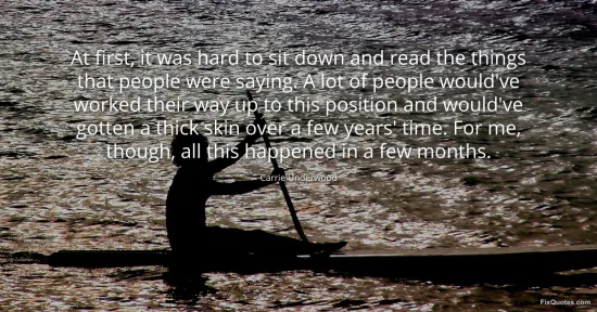 Underwood, Carrie. (2026, January 16). At first, it was hard to sit down and read the things that people were saying. A lot of people would've worked their way up to this position and would've gotten a thick skin over a few years' time. For me, though, all this happened in a few months. FixQuotes. https://fixquotes.com/quotes/at-first-it-was-hard-to-sit-down-and-read-the-109680/