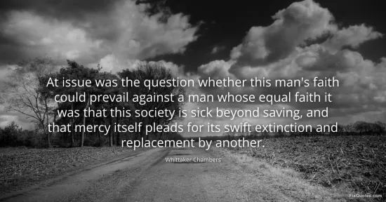 Chambers, Whittaker. (2026, January 15). At issue was the question whether this man's faith could prevail against a man whose equal faith it was that this society is sick beyond saving, and that mercy itself pleads for its swift extinction and replacement by another. FixQuotes. https://fixquotes.com/quotes/at-issue-was-the-question-whether-this-mans-faith-157568/
