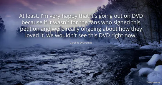 Dhavernas, Caroline. (2026, January 17). At least, I'm very happy that it's going out on DVD because if it wasn't for the fans who signed this petition and were really ongoing about how they loved it, we wouldn't see this DVD right now. FixQuotes. https://fixquotes.com/quotes/at-least-im-very-happy-that-its-going-out-on-dvd-46870/