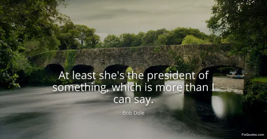 Dole, Bob. (2026, January 17). At least she's the president of something, which is more than I can say. FixQuotes. https://fixquotes.com/quotes/at-least-shes-the-president-of-something-which-is-73017/