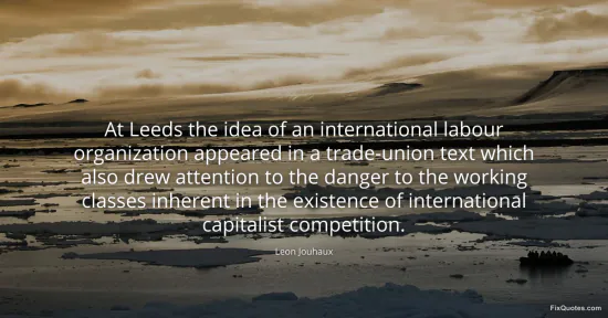 Jouhaux, Leon. "At Leeds the idea of an international labour organization appeared in a trade-union text which also drew attention to the danger to the working classes inherent in the existence of international capitalist competition." FixQuotes. January 15, 2026. https://fixquotes.com/quotes/at-leeds-the-idea-of-an-international-labour-153746/.