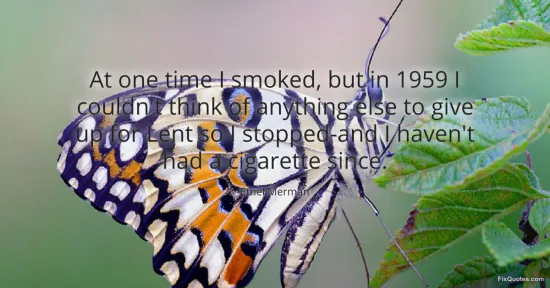 "At one time I smoked, but in 1959 I couldn't think of anything else to give up for Lent so I stopped-and I haven't had a cigarette since." FixQuotes, 17 Jan. 2026, https://fixquotes.com/quotes/at-one-time-i-smoked-but-in-1959-i-couldnt-think-51657/. Accessed 12 Feb. 2026.