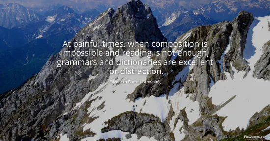 Browning, Elizabeth Barrett. (2026, January 18). At painful times, when composition is impossible and reading is not enough, grammars and dictionaries are excellent for distraction. FixQuotes. https://fixquotes.com/quotes/at-painful-times-when-composition-is-impossible-3410/
