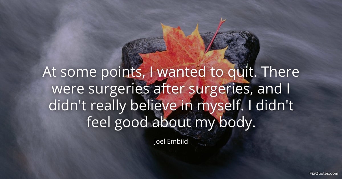 Embiid, Joel. (2026, January 30). At some points, I wanted to quit. There were surgeries after surgeries, and I didn't really believe in myself. I didn't feel good about my body. FixQuotes. https://fixquotes.com/quotes/at-some-points-i-wanted-to-quit-there-were-184820/