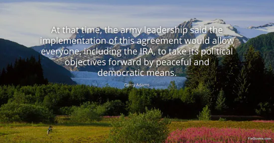 Adams, Gerry. "At that time, the army leadership said the implementation of this agreement would allow everyone, including the IRA, to take its political objectives forward by peaceful and democratic means." FixQuotes. January 17, 2026. https://fixquotes.com/quotes/at-that-time-the-army-leadership-said-the-47840/.