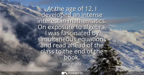| Source | John A. Pople — Autobiographical/biographical notes, The Nobel Prize in Chemistry 1998 (NobelPrize.org); section on early life describing his interest in mathematics at age 12. |