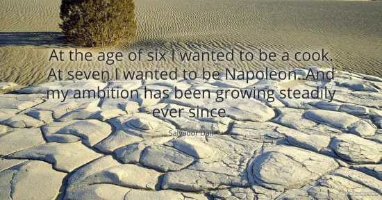 Dali, Salvador. "At the age of six I wanted to be a cook. At seven I wanted to be Napoleon. And my ambition has been growing steadily ever since." FixQuotes. January 15, 2026. https://fixquotes.com/quotes/at-the-age-of-six-i-wanted-to-be-a-cook-at-seven-1662/.
