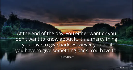 Henry, Thierry. "At the end of the day, you either want or you don't want to know about it. It's a mercy thing - you have to give back. However you do it, you have to give something back. You have to." FixQuotes. January 16, 2026. https://fixquotes.com/quotes/at-the-end-of-the-day-you-either-want-or-you-dont-96669/.