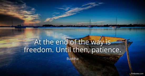 Buddha. "At the end of the way is freedom. Until then, patience." FixQuotes. March 10, 2026. https://fixquotes.com/quotes/at-the-end-of-the-way-is-freedom-until-then-185907/.