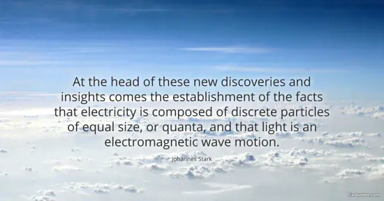 Stark, Johannes. (2026, January 15). At the head of these new discoveries and insights comes the establishment of the facts that electricity is composed of discrete particles of equal size, or quanta, and that light is an electromagnetic wave motion. FixQuotes. https://fixquotes.com/quotes/at-the-head-of-these-new-discoveries-and-insights-146573/