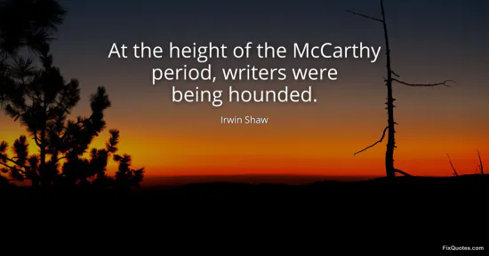 Shaw, Irwin. (2026, January 15). At the height of the McCarthy period, writers were being hounded. FixQuotes. https://fixquotes.com/quotes/at-the-height-of-the-mccarthy-period-writers-were-153469/