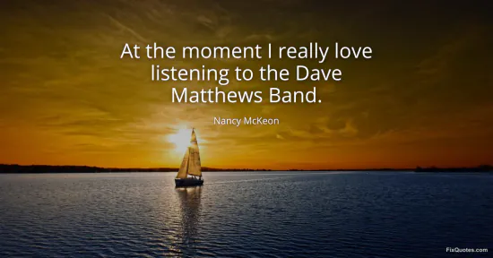 McKeon, Nancy. "At the moment I really love listening to the Dave Matthews Band." FixQuotes. January 15, 2026. https://fixquotes.com/quotes/at-the-moment-i-really-love-listening-to-the-dave-168177/.