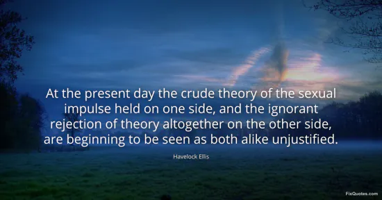"At the present day the crude theory of the sexual impulse held on one side, and the ignorant rejection of theory altogether on the other side, are beginning to be seen as both alike unjustified." FixQuotes, 15 Jan. 2026, https://fixquotes.com/quotes/at-the-present-day-the-crude-theory-of-the-sexual-144110/. Accessed 12 Feb. 2026.