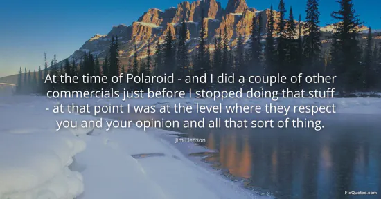 Henson, Jim. (2026, January 17). At the time of Polaroid - and I did a couple of other commercials just before I stopped doing that stuff - at that point I was at the level where they respect you and your opinion and all that sort of thing. FixQuotes. https://fixquotes.com/quotes/at-the-time-of-polaroid-and-i-did-a-couple-of-62524/