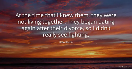 Kaelin, Kato. "At the time that I knew them, they were not living together. They began dating again after their divorce, so I didn't really see fighting." FixQuotes. January 18, 2026. https://fixquotes.com/quotes/at-the-time-that-i-knew-them-they-were-not-living-4568/.