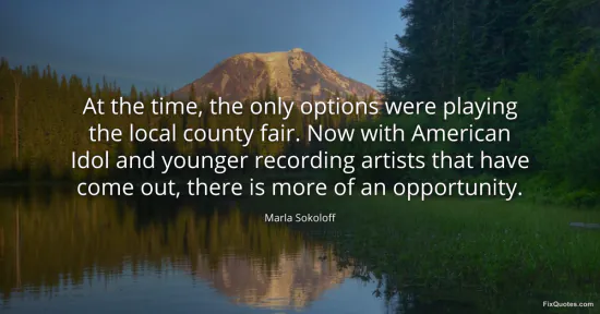 Sokoloff, Marla. "At the time, the only options were playing the local county fair. Now with American Idol and younger recording artists that have come out, there is more of an opportunity." FixQuotes. January 16, 2026. https://fixquotes.com/quotes/at-the-time-the-only-options-were-playing-the-124584/.
