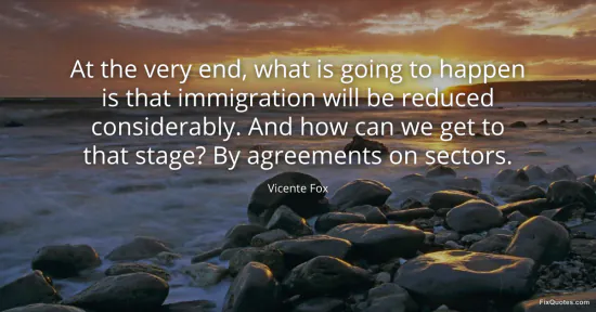 Fox, Vicente. (2026, January 16). At the very end, what is going to happen is that immigration will be reduced considerably. And how can we get to that stage? By agreements on sectors. FixQuotes. https://fixquotes.com/quotes/at-the-very-end-what-is-going-to-happen-is-that-102862/