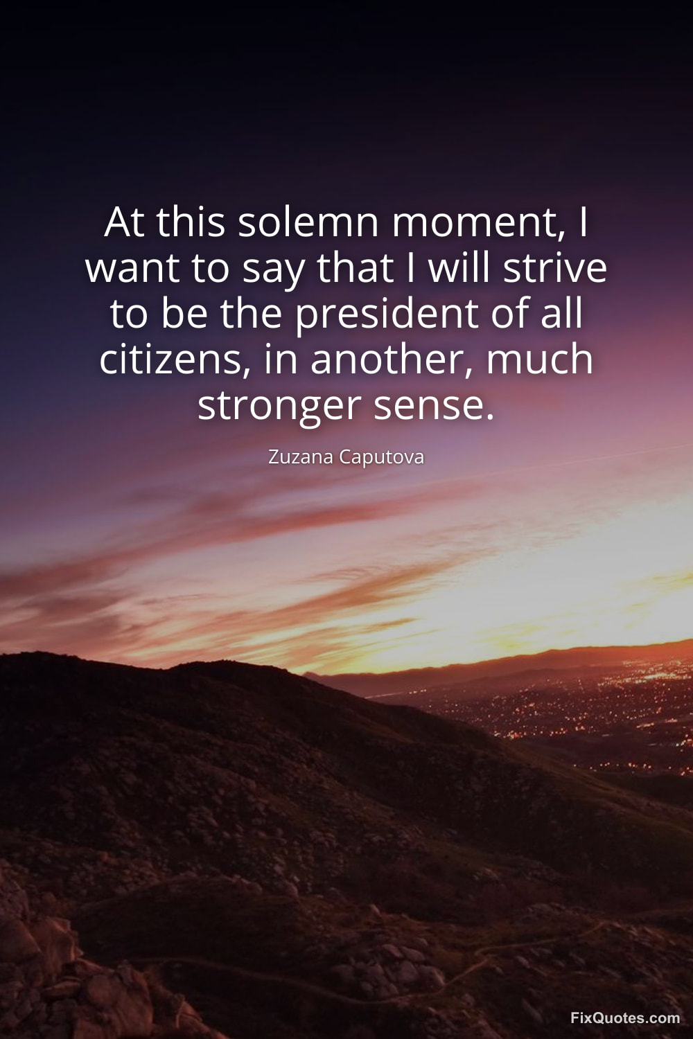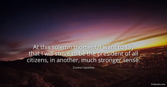Caputova, Zuzana. "At this solemn moment, I want to say that I will strive to be the president of all citizens, in another, much stronger sense." FixQuotes. February 16, 2026. https://fixquotes.com/quotes/at-this-solemn-moment-i-want-to-say-that-i-will-185468/.