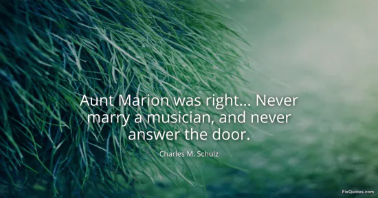 Schulz, Charles M. "Aunt Marion was right... Never marry a musician, and never answer the door." FixQuotes. January 15, 2026. https://fixquotes.com/quotes/aunt-marion-was-right-never-marry-a-musician-and-5019/.