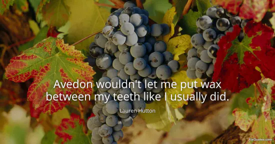 Hutton, Lauren. "Avedon wouldn't let me put wax between my teeth like I usually did." FixQuotes. January 17, 2026. https://fixquotes.com/quotes/avedon-wouldnt-let-me-put-wax-between-my-teeth-72258/.