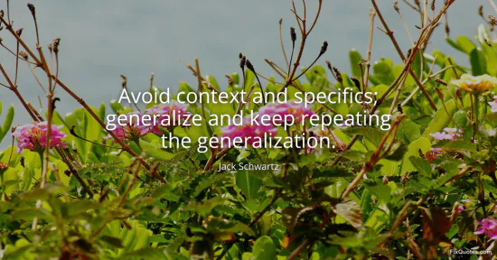 The intent is almost certainly diagnostic. Schwartz isn’t celebrating vagueness; he’s pointing to a tactic that thrives in politics, advertising, and even workplace culture: strip away the conditions that would complicate a claim, then replace reality with a slogan. “Generalize” collapses messy distributions into a single, emotionally legible story. “Keep repeating” is the behavioral nudge: repetition doesn’t prove truth, it simulates familiarity, and familiarity is often mistaken for credibility.