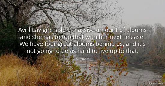 Jones, Kelly. "Avril Lavigne sold a massive amount of albums and she has to top that with her next release. We have four great albums behind us, and it's not going to be as hard to live up to that." FixQuotes. January 17, 2026. https://fixquotes.com/quotes/avril-lavigne-sold-a-massive-amount-of-albums-and-70443/.