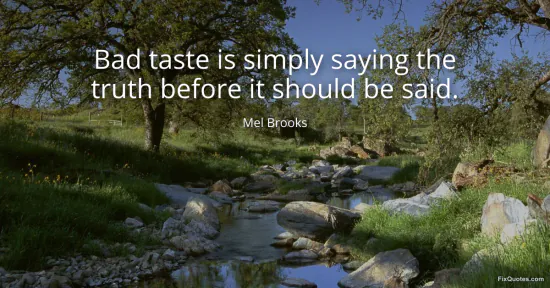 Brooks smuggles a defense of comedy into a complaint people use to shut comedy down. Calling something "bad taste" pretends to be about manners, but it usually means: you said the quiet part out loud, and you said it too soon. His line pivots on that timing. Taste, in this framing, isn’t an ethical yardstick so much as a social calendar. The truth can be tolerated - even applauded - once institutions, audiences, or victims have metabolized it into an acceptable narrative. Before then, it lands as rudeness.