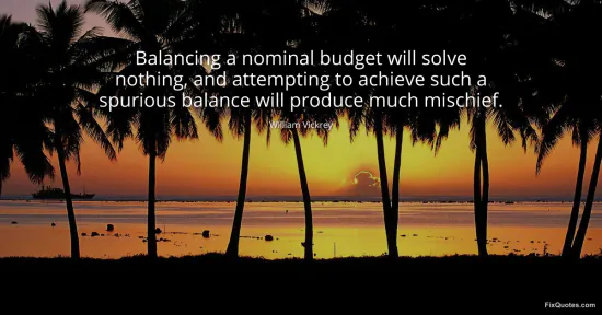 Vickrey, William. "Balancing a nominal budget will solve nothing, and attempting to achieve such a spurious balance will produce much mischief." FixQuotes. January 16, 2026. https://fixquotes.com/quotes/balancing-a-nominal-budget-will-solve-nothing-and-96713/.