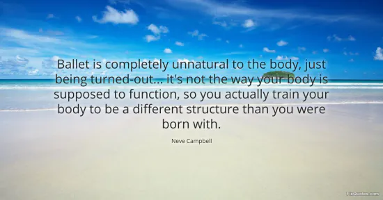 Campbell, Neve. (2026, January 14). Ballet is completely unnatural to the body, just being turned-out... it's not the way your body is supposed to function, so you actually train your body to be a different structure than you were born with. FixQuotes. https://fixquotes.com/quotes/ballet-is-completely-unnatural-to-the-body-just-97602/
