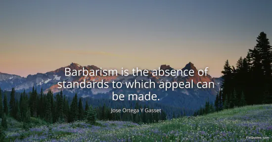 Gasset, Jose Ortega Y. "Barbarism is the absence of standards to which appeal can be made." FixQuotes. January 15, 2026. https://fixquotes.com/quotes/barbarism-is-the-absence-of-standards-to-which-144226/.