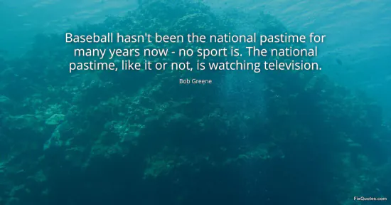 Greene, Bob. "Baseball hasn't been the national pastime for many years now - no sport is. The national pastime, like it or not, is watching television." FixQuotes. January 17, 2026. https://fixquotes.com/quotes/baseball-hasnt-been-the-national-pastime-for-many-49324/.