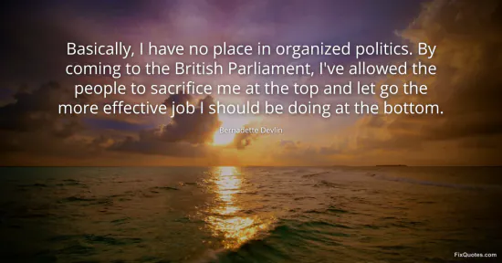 Devlin, Bernadette. (2026, January 16). Basically, I have no place in organized politics. By coming to the British Parliament, I've allowed the people to sacrifice me at the top and let go the more effective job I should be doing at the bottom. FixQuotes. https://fixquotes.com/quotes/basically-i-have-no-place-in-organized-politics-109336/